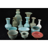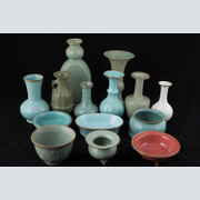 Three Northern Song Dynasty Ru Kiln pieces displayed are examples of Merchant wares. Previously, the only known specimens of such wares were those collected by the Qianlong Emperor during the Qing Dynasty. However, following China's integration into the global market, numerous exquisite pieces and collections that had been concealed have now become accessible. Merchant wares are typically smaller than Commissioned Royal Imperial wares and exhibit complete glazing, including the foot ring. These items were fired using setters equipped with prongs, which elevated the pieces above the kiln floor. Consequently, they display spur marks that are approximately the size and shape of sesame seeds—distinctive traits that are exclusive to merchant and tribute wares. It is important to note that merchant wares lack the refinement of tribute wares, as the most exquisite examples were adorned with fire-gilded copper bands and presented to Emperor Huizong as tribute. ppjrs