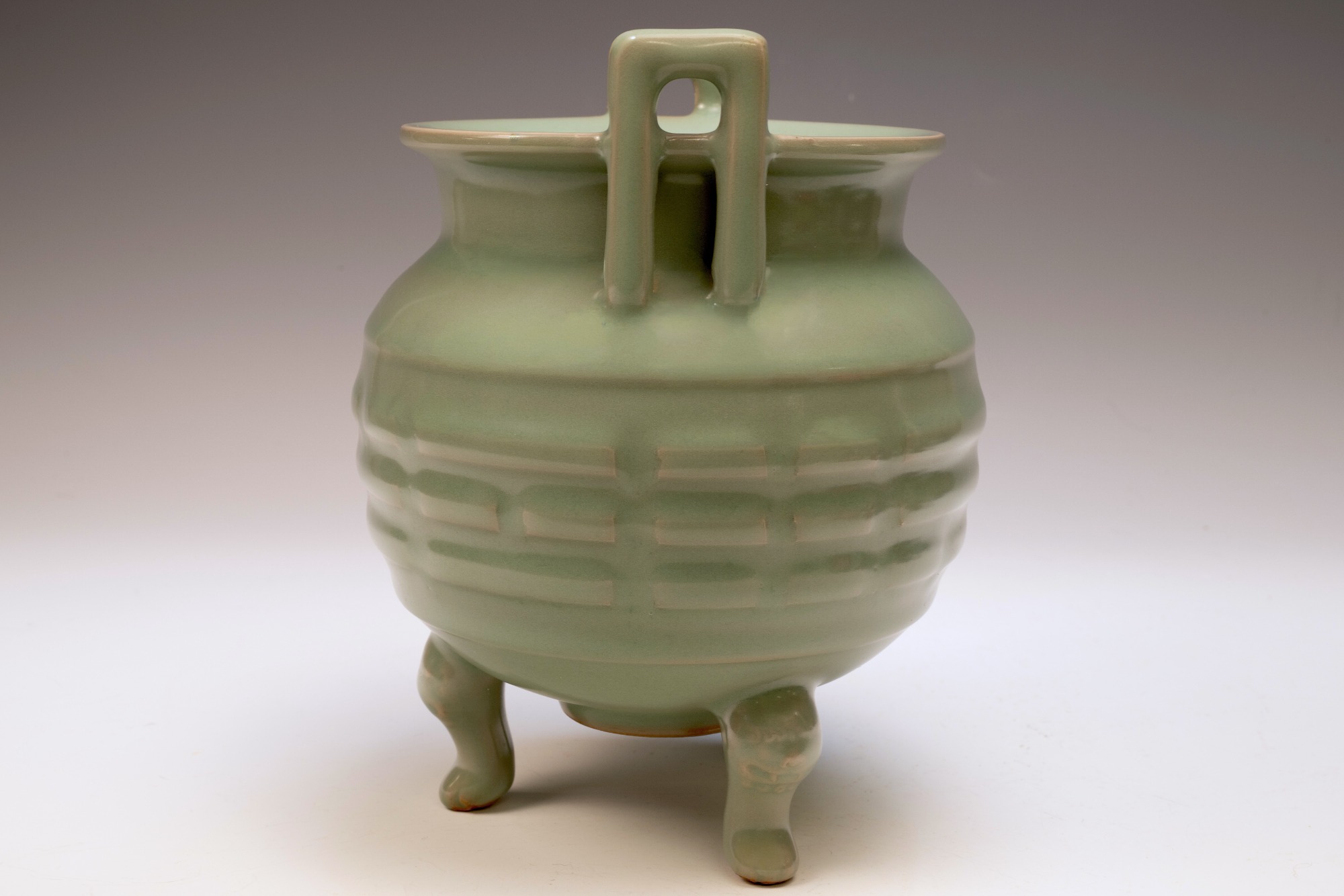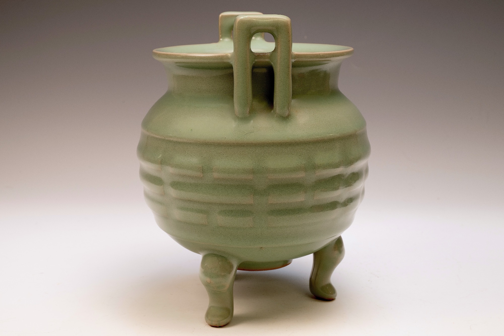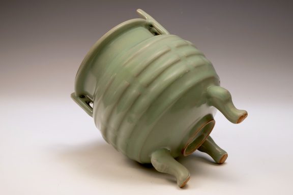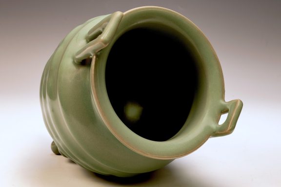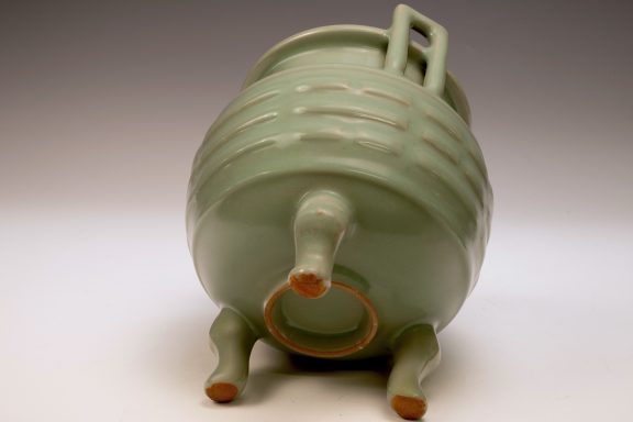 This distinguished Second Commissioned Official Imperial Royal Ru-kiln Burner stands as a pinnacle of luxury and craftsmanship within the realm of celadon ware, renowned for its exceptional artistry. Specifically crafted for Emperor Huizong and his esteemed court, this Three Leg Burner exemplifies the highest standards of celadon ceramics ever developed in China. The Burner is adorned with an exquisite glaze, celebrated for its rich texture and smooth finish, which is further enhanced by the incorporation of rare crushed blue agate within the glaze composition. This distinctive feature can be examined under magnification, revealing visible specks of agate as depicted in the accompanying microscopic imagery, observable using a 20x loupe or microscope. It is important to note that the inclusion of rare crushed blue agate is a hallmark of all Official Imperial Royal Ru-kiln wares commissioned during the era of Emperor Huizong. The body of this exceptional Burner is characterized by an off-white hue that transitions to a brownish tone post-firing, reflecting the unique properties of the materials employed. With an approximate height of 9 1/4 inches, this piece constitutes a valued addition to the surviving collection of Emperor Huizong’s enduring legacy of Northern Song Dynasty Official Imperial Royal Ru-kiln artifacts. ppjrs