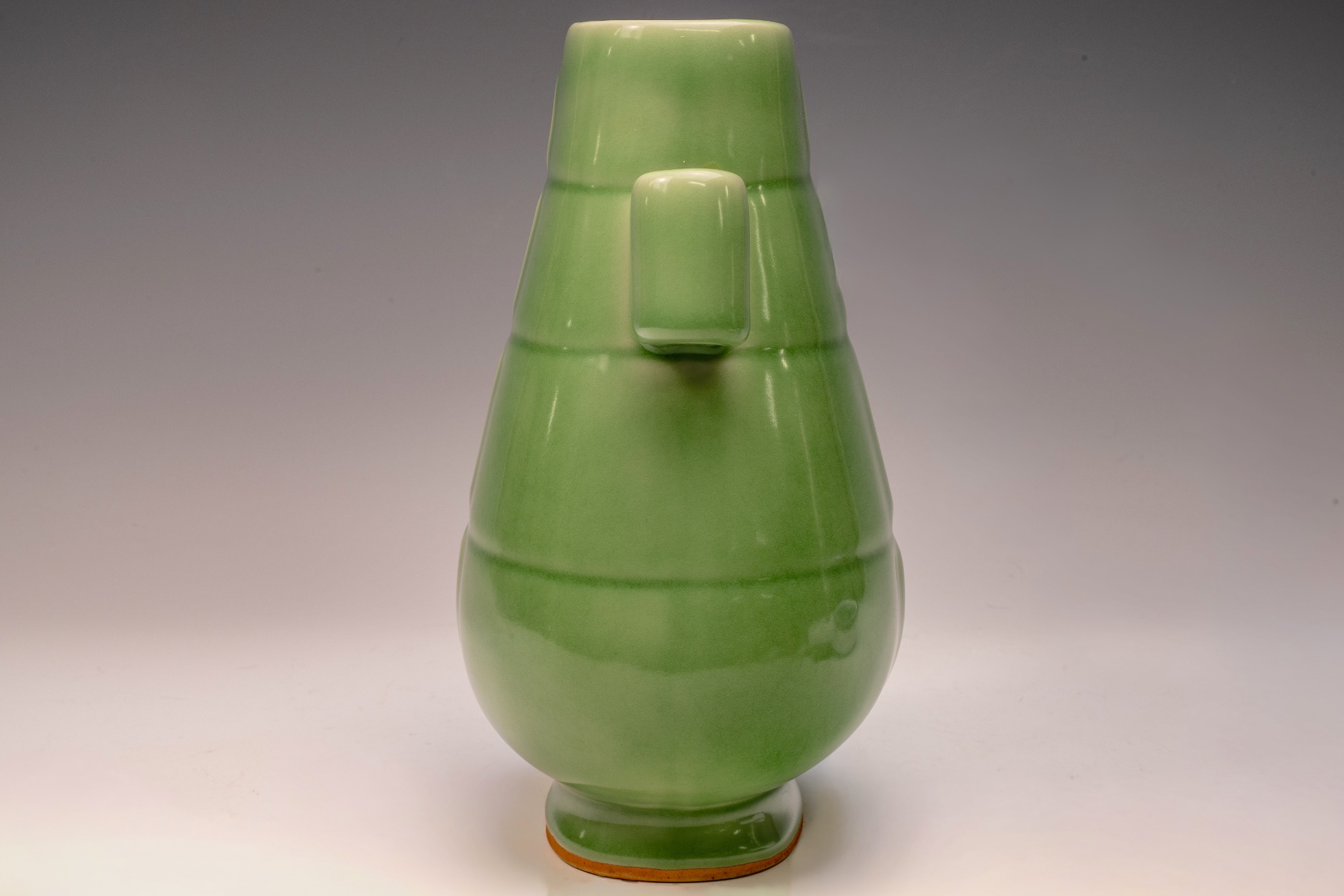 This exceptional Second Commissioned Official Imperial Royal Ru-kiln Phoenix Handle Vase stands as a testament to the grandeur of Chinese ceramic artistry. It is part of a distinguished collection of celadon wares renowned for their elegance and luxurious quality, specifically crafted for Emperor Huizong and his esteemed court. This particular celadon vase boasts a strikingly rich and smooth glaze, enhanced by the incorporation of Rare Blue Crushed Agate within the glaze formulation. This unique feature is readily observable through a 20x loupe or microscope, where one can discern the specks of agate evident in the accompanying microscopic images alongside the vase’s photographs. The use of Rare Crushed Blue Agate is a hallmark of all Official Imperial Royal Ru Kiln wares commissioned during Emperor Huizong's reign. The Second Commissioned Royal Vase exhibits an off-white body that transforms to a warm brownish hue post-firing. With a height of approximately 9 5/8 inches, this piece is a notable example from Emperor Huizong's surviving collection of Northern Song Dynasty Official Imperial Royal Ru-kiln wares. ppjrs